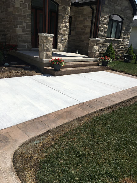 Transform your outdoor space with our stunning patio options, featuring a choice between a traditional broom finish or an exposed aggregate with a vibrant color finish. Personalize your patio further by selecting from a variety of stylish stamp designs and finishes to create the perfect look for your home.